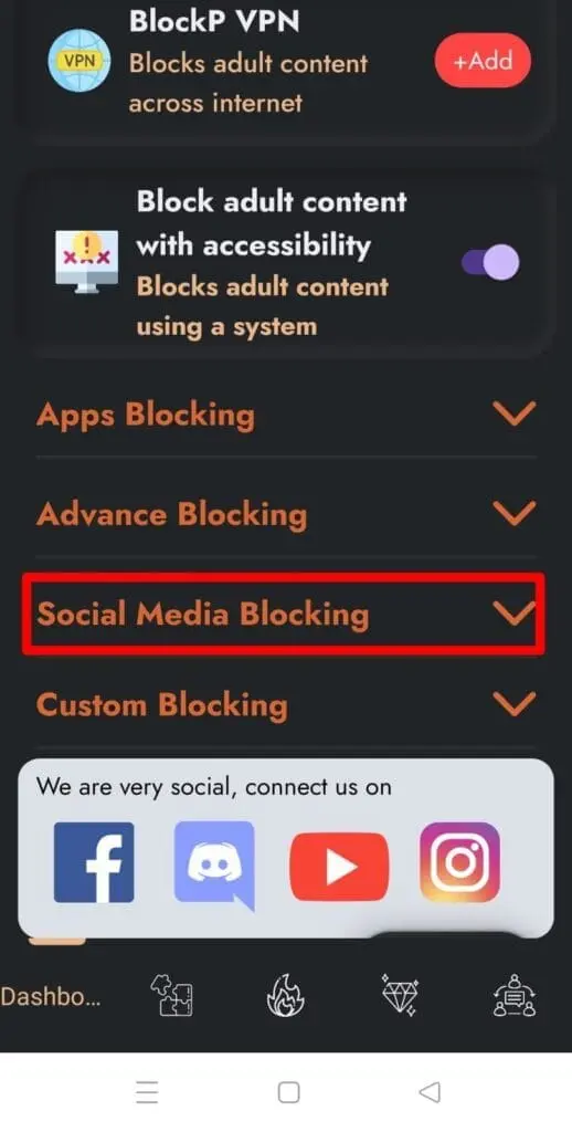 步骤 1:打开 BlockP 应用程序,然后点击“社交媒体屏蔽”。